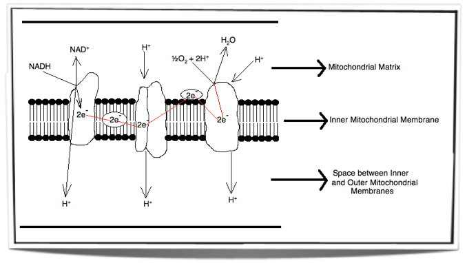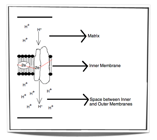 Figure 8.1.6 shows the movement of protons from the matrix into the space between the inner and outer membranes. This creates a concentration gradient. The energy used to pump these protons across the inner membrane comes from the energy released by the electrons passing through the electron transport chain.